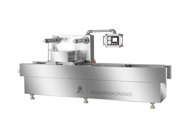 氣調(diào)盒式真空包裝機工作原理: 先將產(chǎn)品放在托盤里,再將托盤放入設備的放料區(qū),托盤隨著鏈條的向前運行進入到封口模具里 ,模具上升,在封口模具里將上膜附在托盤上,先抽真空(可根據(jù)用戶產(chǎn)品包裝要求,在抽象真空 的基礎上,充氮氣或混合氣體進行包裝)封口、(上膜和托盤封在一起)沖切,最后排氣,降膜, 包裝好的產(chǎn)品隨著鏈條繼續(xù)向前運行,從出料口出料。設備還附加了光電跟蹤對齊彩膜系統(tǒng),為用 ...